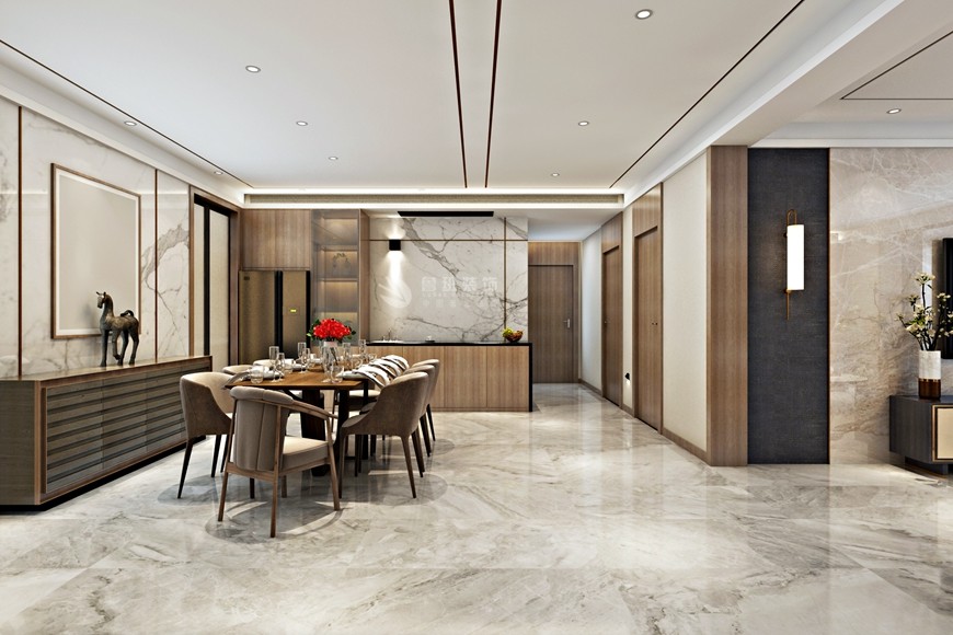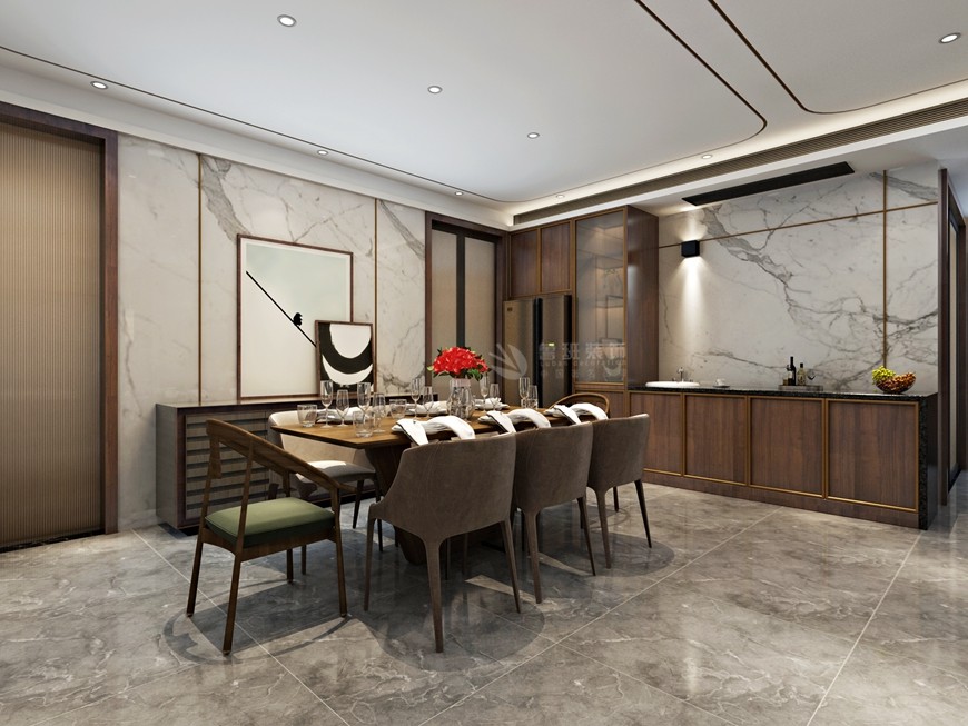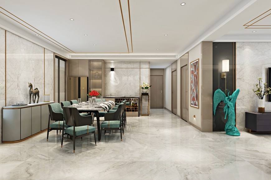 ▲西安(ān)魯班裝(zhuāng)飾出品湖(hú)城大境八号地天錦230平米現代簡約風馬超設計師主筆(bǐ)設計方案一——餐廳設計效果圖