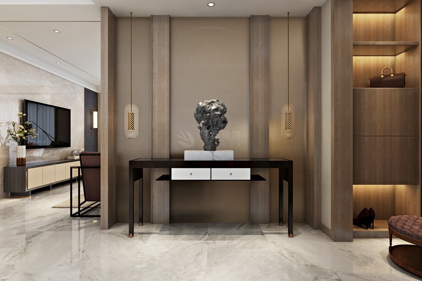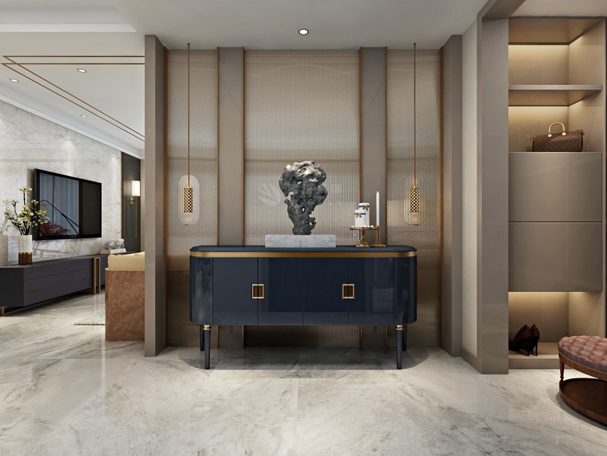 ▲西安(ān)魯班裝(zhuāng)飾出品湖(hú)城大境八号地天錦230平米現代簡約風馬超設計師主筆(bǐ)設計方案一——玄關設計效果圖